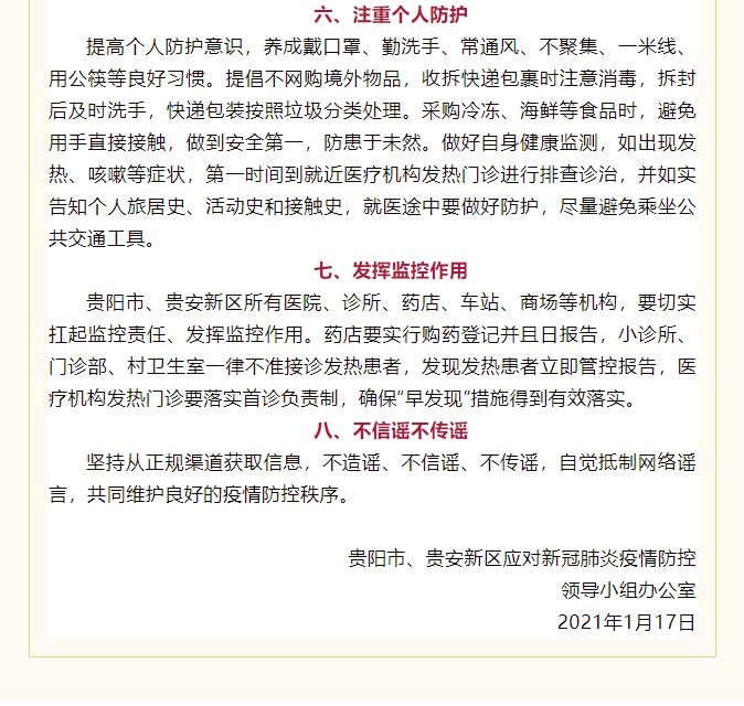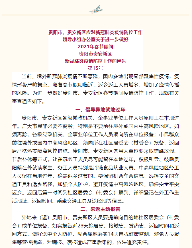 最新!贵阳发布春节疫情防控8条