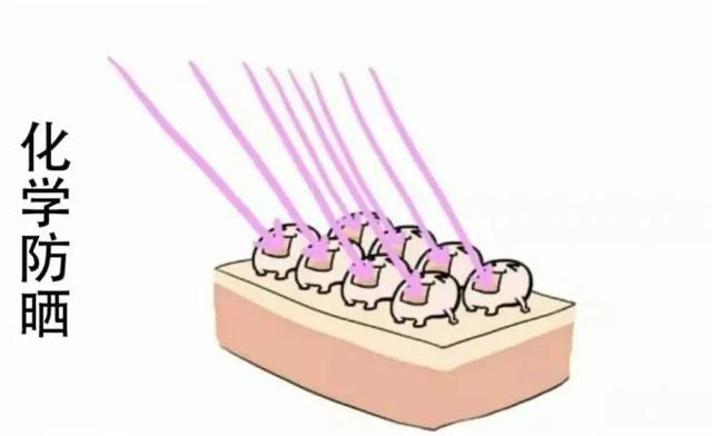 化学性防晒主要是通过吸收紫外线来实现防晒,由于化学防晒剂分子会被皮肤吸收,因此吸收紫外线的过程发生在皮肤内部,并由人体代谢而清除。