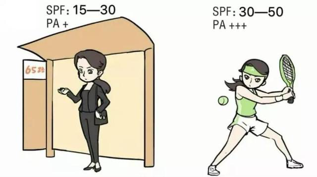 日常外出,我们可选用SPF15-SPF30;PA+的防晒品,在外出前20分钟左右涂抹均匀,每隔2-3个小时补擦一次。户外运动的防晒,可选择SPF30-50;PA+++的防晒品,每隔2-3小时补擦一次。