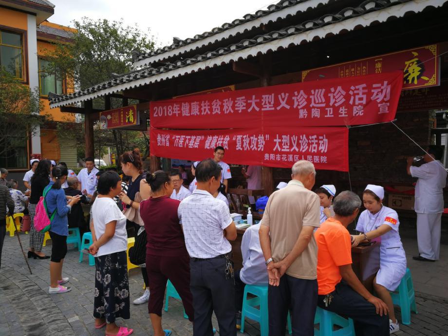 根据国家卫生健康委及省委、省政府的有关要求,进一步推进贵州健康精准扶贫,提高贫困县县级医院的医疗服务能力和水平,贵阳市花溪区人民医院积极响应花溪区卫计局的安排部署,于2018年8月29日至9月1日,在花溪湿地公园、高坡乡、黔陶乡开展了贵州省“万医下基层”健康扶贫“夏秋攻势”大型义诊活动。