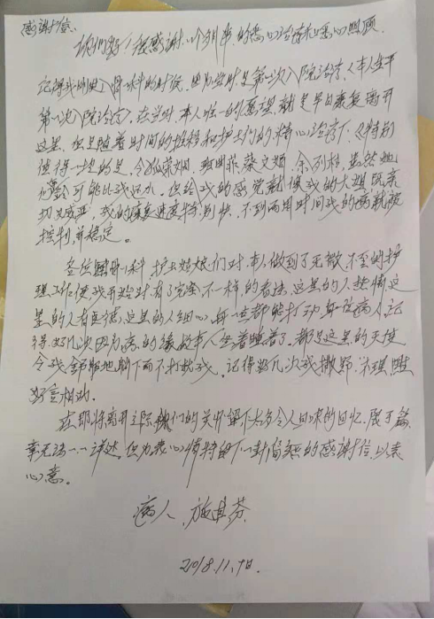 (一)骨一科:收到表扬信一封