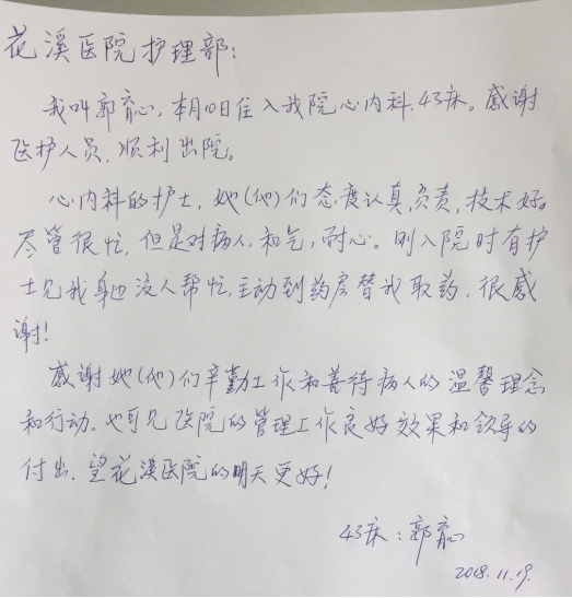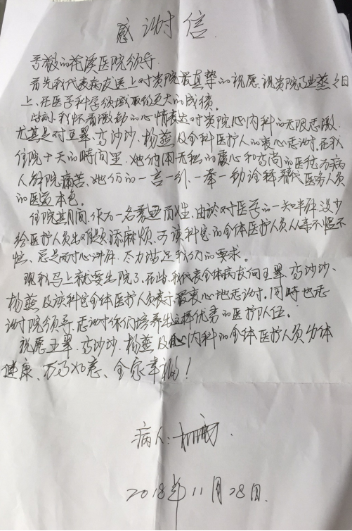 (二)心内科;收到表扬信三封
