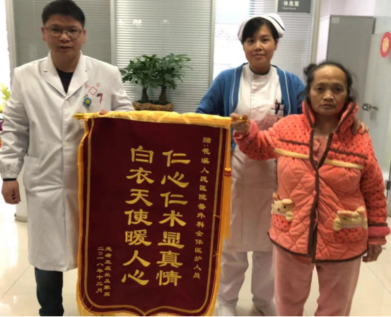 5、普外科:收到锦旗一面,赠全体医护人员,上书“仁心仁术显真情、白衣天使暖人心”。