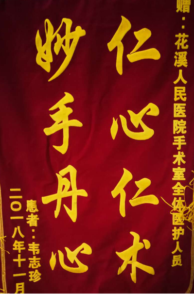 4、手术室:收到锦旗一面,赠全体医护人员,上书“仁心仁术、妙手回春”;