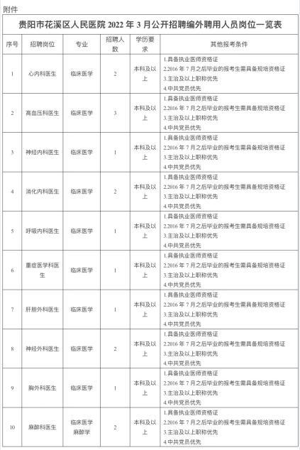 本次拟面向社会公开招聘编外聘用人员47名。招聘岗位详见《贵阳市花溪区人民医院2022年面向社会公开招聘编外聘用人员岗位一览表》(附件1)。