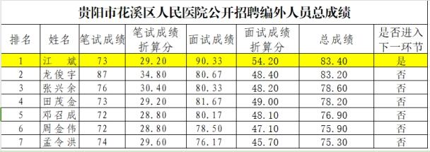 附件1:贵阳市花溪区人民医院公开招聘编外人员总成绩