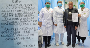 我院中医科医生接过信后,激动的说“我们将带着这份感谢与认可,怀着感恩之心,不忘初心,牢记医学使命,不断提高自身专业知识,为患者解除病痛”。